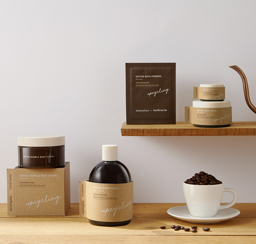 버려지는 식물자원 재원료화이니스프리는 제주 앤트러사이트와 함께 버려지는 커피박을 커피 오일, 스크럽 파우더 등으로 재원료화해 스페셜 각질 케어용 업사이클 제품을 개발했습니다. |