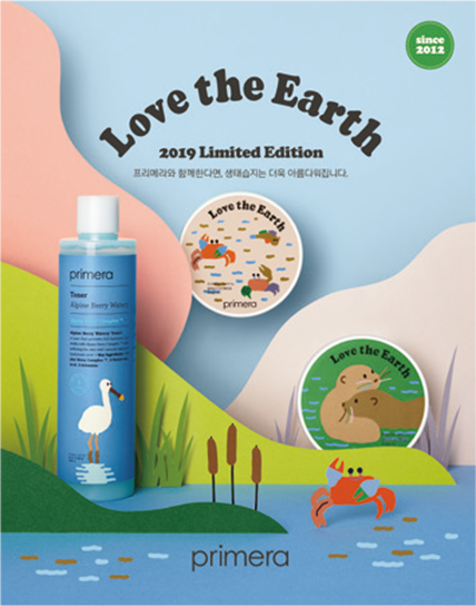 Since 2012, primera has been organizing Love the Earth campaign to preserve wetlands where the vitality of the Earth is accumulated. In April 2019, 'My Wetland Home in Seoul' was hosted in Seongsudong, Seoul, providing an opportunity to experience the ecological wetland in the urban environment. In October, primera also launched Alpine Berry Watery Cream Love the Earth Limited Edition. The product containers were designed with characters depicting cute otters – the endangered species living in the habitat of wetlands. The limited edition product was also packaged in recycled plastic containers, emphasizing Amorepacific`s effort to preserve environment.